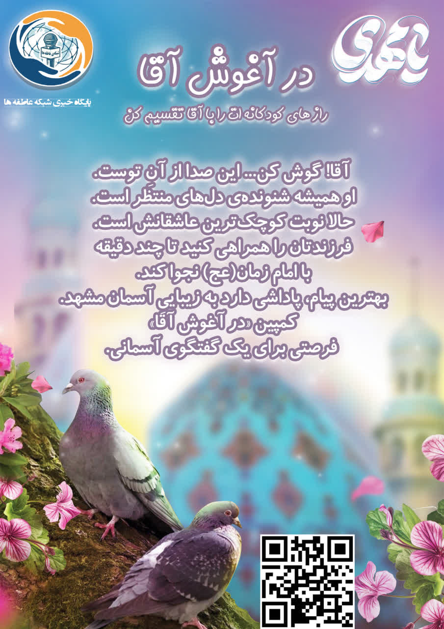 «آقا گوش کن... این صدا از آن توست. او همیشه شنونده دل‌های منتظر است. حالا نوبت کوچک‌ترین عاشقانش است. فرزندتان را همراهی کنید تا چند دقیقه با امام زمان(عج) نجوا کند.»
